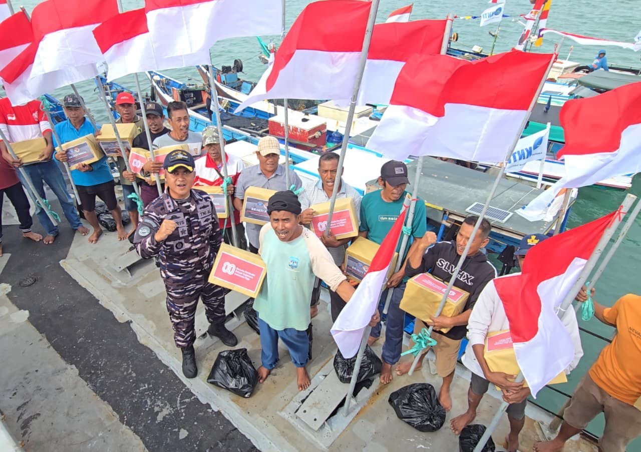 KARANG UNARANG – 15 Agustus 2025 Menjelang peringatan HUT ke-80 Kemerdekaan Republik Indonesia, semangat nasionalisme berkobar hingga ke wilayah perbatasan laut Indonesia. KRI Ajak-653 dari Satuan Kapal Cepat (Satkat) Koarmada II menggelar kegiatan bakti sosial dan membagikan bendera Merah Putih kepada para nelayan di perairan Karang Unarang, perbatasan RI–Malaysia, Jumat (15/08/2025).